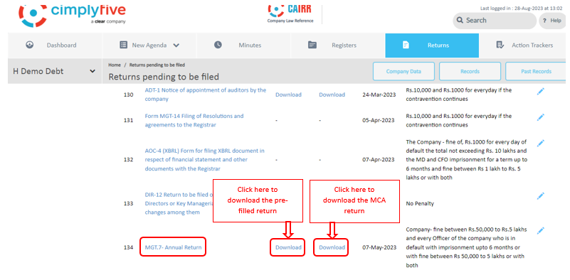 MGT-7 from the list of returns.