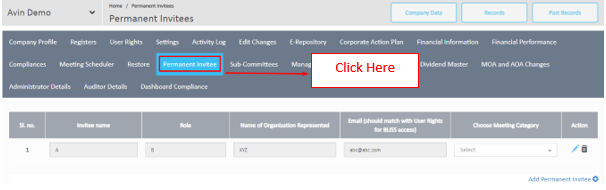 Step 4 :Add Permanent InviteeStep 5: Enter details for the Permanent Invitee and Click on the