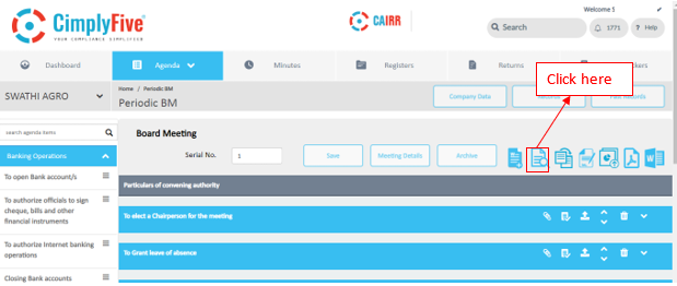 Step 4: Pop-up window appears as shown below. Click on Agenda/Minutes