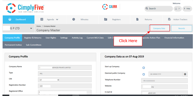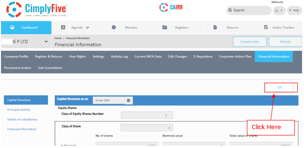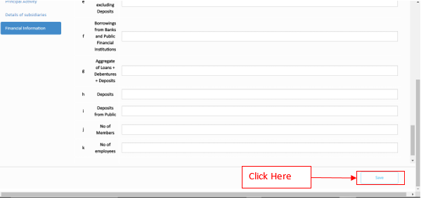 Step 5: Click on “ Details of Subsidiaries” and enter the ‘as on’ date for which the information is filled